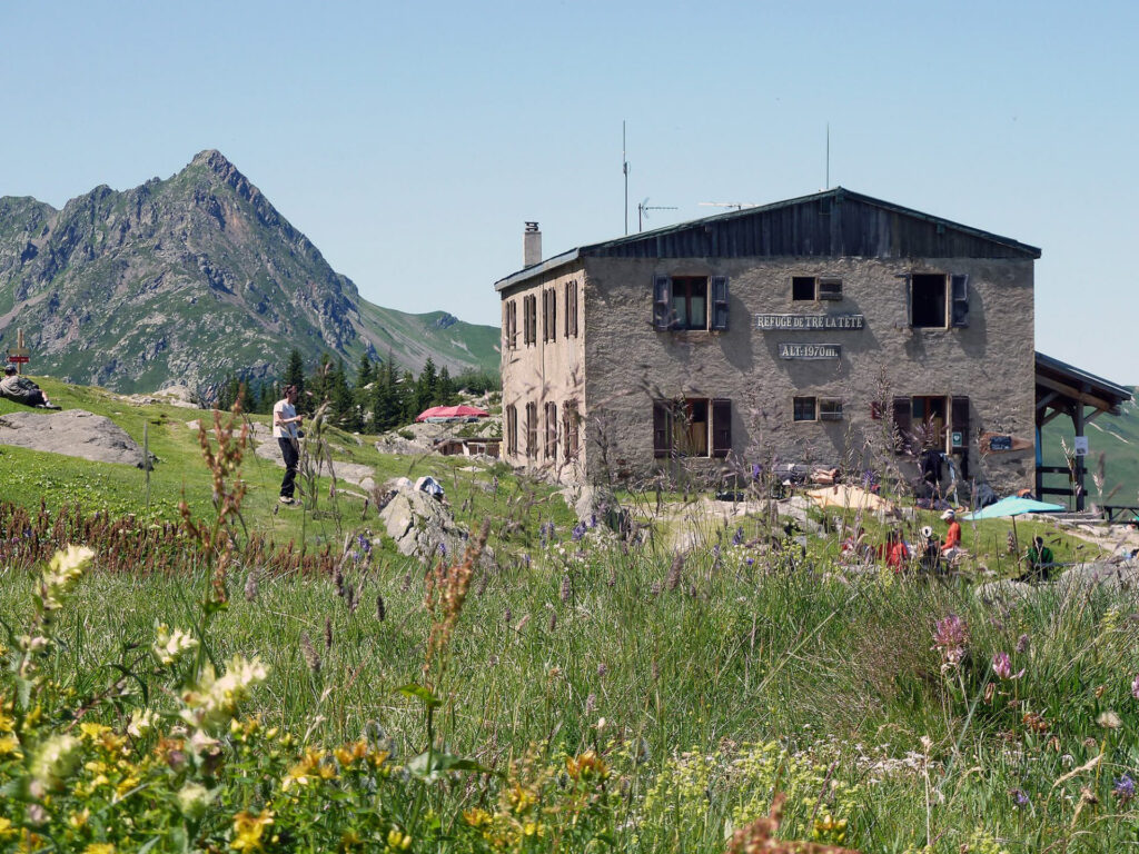 De son promontoire, le refuge de Tré-la-Tête, 1970 m, domine la vallée des Contamines et offre un magnifique panorama allant du col du bonhomme en passant par le Mont-Joly, la chaine des Fiz et les dômes de Miage…